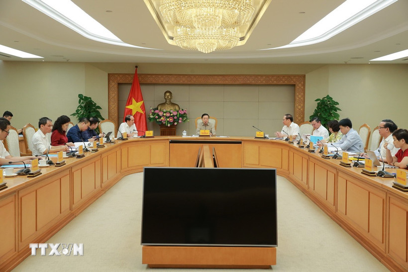 Phó Thủ tướng Trần Hồng Hà chỉ đạo cuộc họp nghe báo cáo về kế hoạch hành động quốc gia khắc phục ô nhiễm lưu vực sông, môi trường không khí; tình hình xử lý ô nhiễm môi trường không khí tại TP Hà Nội, TP.HCM diễn ra sáng 11/9. Ảnh: TTXVN